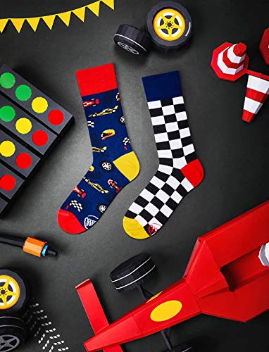 Many Mornings Formula Racing Calze multicolori motivo scacchi, traguardo, auto, casco, bandiera (35-38)