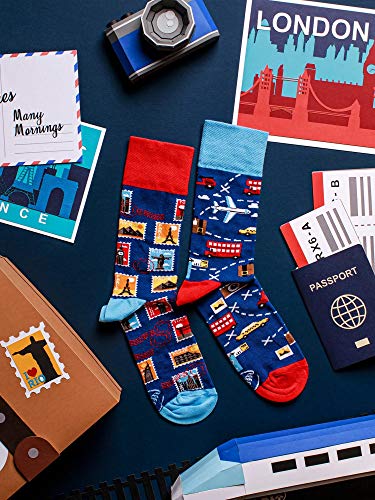 Many Mornings The Traveler Calze multicolori valigia, biglietti, viaggi, francobolli, scooter (35-38)