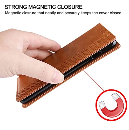 MAOGE Cover Custodia Folio in Pelle per Xiaomi Poco F4 5G, Premium PU/TPU Portafoglio Case con Slot per Schede, Magnetica Adsorbimento Automatico Flip Cover - Marrone