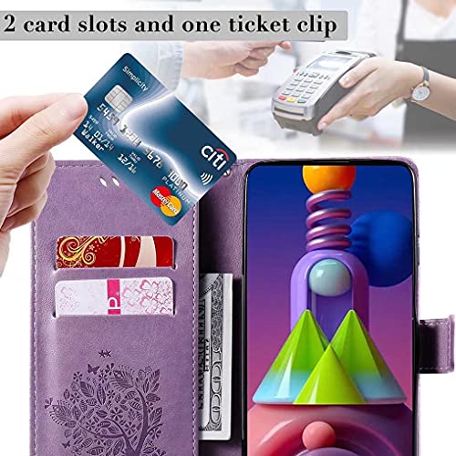 MAOGE Cover per Motorola Moto G62 5G Portafoglio, Custodia con Bella Foglie e Gatto in Rilievo Design in Pelle Custodia, Antiurto Case Custodia, Lavanda
