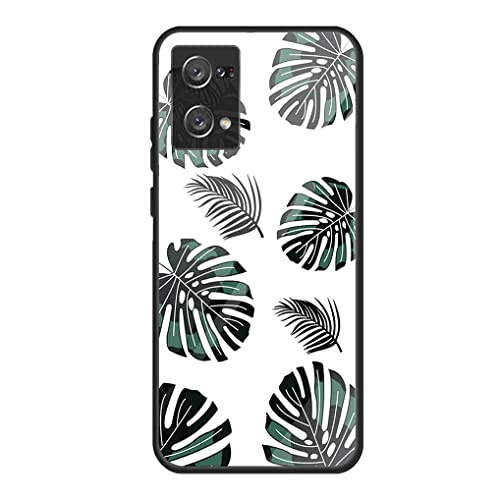 MAOGE Cover per Oppo Reno7 4G (Oppo Reno 7), Custodia Ultra Sottile in Silicone TPU, Retro in Vetro Temperato a Elegante Motivo Dipinto Antiurto AntiGraffio Case, Foglie Verdi