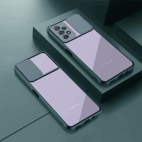 MAOGE Trasparente Cover per Samsung Galaxy A52s 5G / Samsung Galaxy A52 (4G/5G), Scorrevole [Protezione Fotocamera] Ultra Sottile AntiGraffio Antiurto PC + TPU Silicone Bumper Custodia, Verde