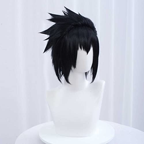 MAOMA Parrucca Cosplay Anime Naruto Shippuden Uchiha Sasuke Parrucca,Black Short Parrucca Cosplay,con Rete per Parrucca Gratuita,per Festa Carnevale Halloween Cosplay Parrucca
