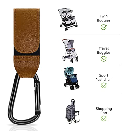 MaoNativey 2 Pezzi Ganci per Passeggino, Universale Pelle Ganci Carrozzina per Appendere Borsa per La Spesa Borse Pannolini Borsette