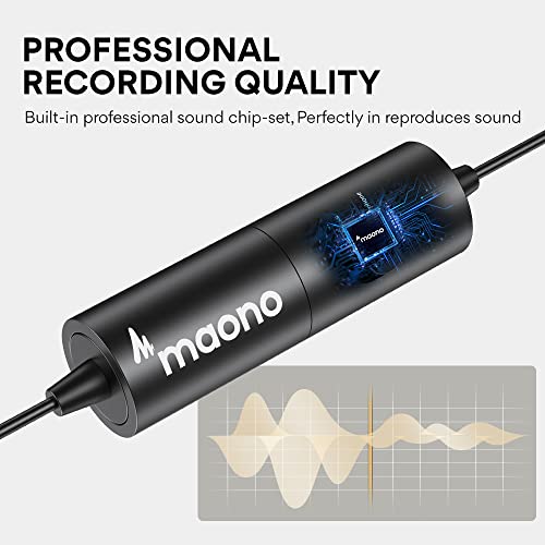 MAONO Lavalier Microfono Mani Libere Clip-on Lapel Mic con Omnidirezionale Condensatore per DSLR, Fotocamera,iPhone,Android,Samsung,Sony,PC,Laptop (236 in)