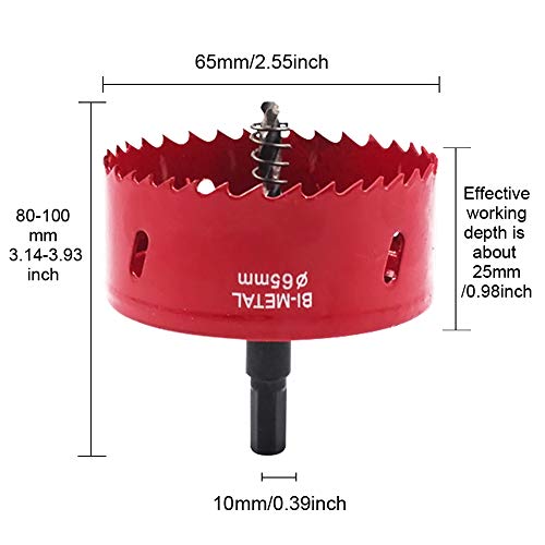 【Dimensione di taglio】sega a tazza per legno Diametro di taglio: 65 mm/2,55 pollici, profondità di taglio: 25 mm/0,98 pollici;
