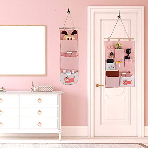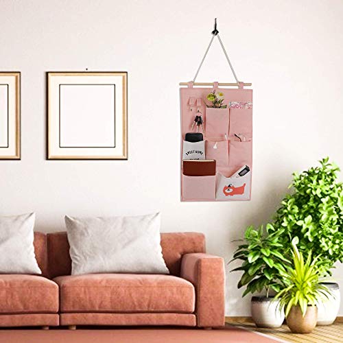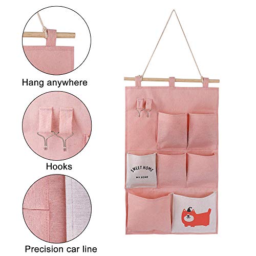 MaoXinTek Borsa Portaoggetti da Parete 2 Stili Stoffa Organizzatore in Lino con Piccole Tasche per Casa Ufficio 2 PCS (ROSA)
