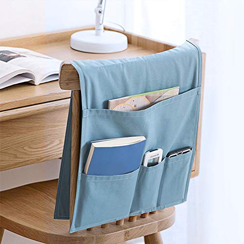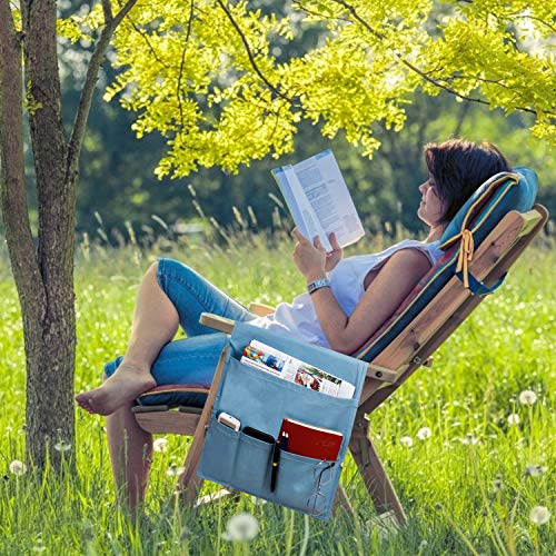 MaoXinTek Organizer per Bracciolo Divano, Portaoggetti Porta Telecomando TV Caddy per Poltrona con 5 Tasche, Supporto Antiscivolo per Custodia in Tessuto per Riviste, Libri, Cellulare, iPad, Blu
