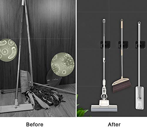Facile da installare: questo appendiabiti per scopa a parete per organizer per utensili per impieghi gravosi è facile e comodo da installare, basta attaccarlo al muro con un forte autoadesivo che mantiene saldamente il Mop in posizione e impedisce che cadano.