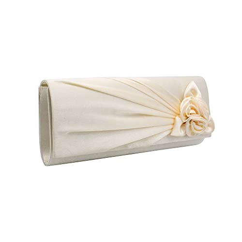 Maozuzyy Pochette Donna Borsa da Sera Pochette da Donna con Fiore di Rosa Fatto A Mano in Seta Color Bianco Latte