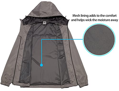 Mapamyumco Giacca a vento leggera da uomo, antivento con cappuccio e giacca da golf, elasticizzata resistente all'acqua, Grigio, Small
