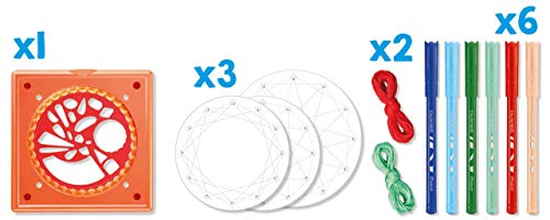 Include stencil da disegno a spirale, 6 pennarelli con punta in feltro oceano, 2 colori di filo e 3 modelli a cerchio per decorare