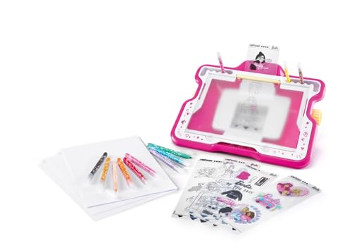 UNIVERSO BARBIE: Con gli stencil e una tavolozza di vivaci pennarelli, il tuo bambino potrà entrare nel fantastico mondo fantasy rosa. Realizzerà incredibili disegni Barbie facilmente grazie alla lavagna magica della luce.
