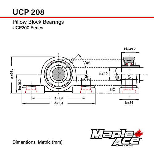 MAPLE ACE UCP208 40 mm, supporto per cuscinetti, 2 viti di fissaggio (2 pezzi)