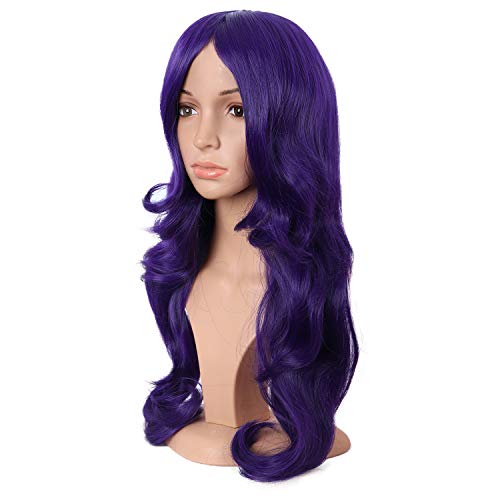 MapofBeauty 24 Pollice/60cm Moda Signora Frangia Laterale Lungo Ricci Donna Ricci Parrucche (Scuro Viola)