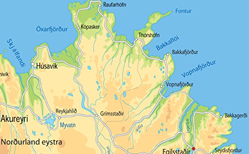 Questa cartina mostra gli aspetti fisici dell'Islanda. Questa mappa è chiara e colorata, da parete.