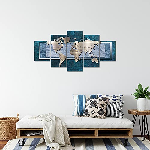 Mappa Del Mondo Murali Tela Non Tessuta 5 Pezzi Continenti Metallo Blu Camera Da Letto Corridoio 106753c