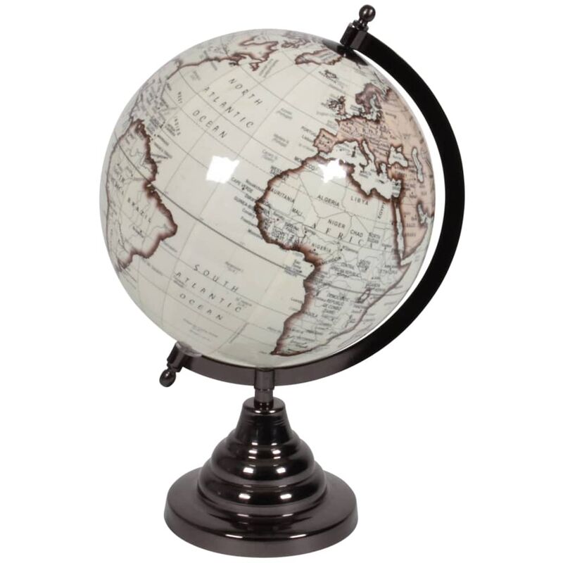 Il mappamondo decorativo da 20 cm della Lesli Living è una bellissima decorazione con un aspetto in stile anticato. Potete esporlo nel vostro studio oppure su una credenza in soggiorno o in corridoio. È un affascinante mappamondo, in cui le proporzioni in termini di dimensioni, forma e distanza tra paesi e continenti sono corrette, cosa che non vale per una cartina geografica. Inoltre, può essere un elemento didattico utile per i bambini che vogliono sapere di più sui diversi paesi del mondo. È costituito da un mappamondo dall'aspetto vintage e finitura lucida, collegato al suo supporto da una cornice in metallo a forma di C. I paesi sono disegnati su uno sfondo chiaro e trasparente. Questo mappamondo ha un diametro di 20 cm. Colore: Nero, multicolore Materiale: Alluminio Dimensioni: 20 x 33 cm (Diam. x A) Finitura nera nichelata SKU: 441267