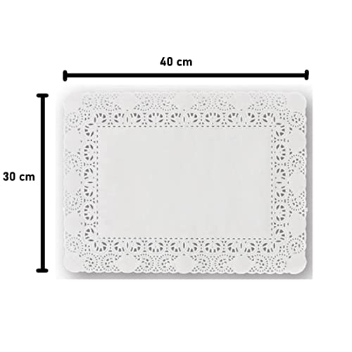 MAQA 100 pz Centrini carta pizzo per decorazioni 30x40 cm, centrino carta rotondo per feste e matrimoni, Merletto bianco decorativo per cerimonie ed eventi