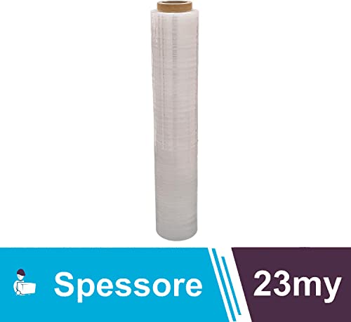 ✔️ MATERIALE: Il film estensibile per uso manuale è in polietilene coestruso a tre strati LLDPE. Grazie alla composizione chimica della pellicola estensibile e all'estrema resistenza alla perforazione, consente l'utilizzo e la perfetta stabilità del carico.;