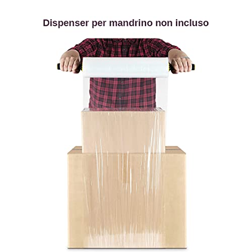 ✔️ QUANTITA': Riceverai un rotolo cellophane imballaggio. Questo rotolo plastica per imballaggio trasloco non lascia residui di colla, quindi può essere utilizzato per le merci delicate e i oggetti di cui si vuole mantenere l'aspetto. Dispenser per mandrino non incluso.