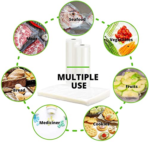 MULTIUSO: I sacchetti per sottovuoto alimenti proteggono notevolmente gli alimenti contro le scottature del congelatore, o da odori sgradevoli, perfetto per congelare o conservare il cibo in eccesso. Inoltre può essere utilizzato con gioielli, fotografie, documenti e medicinali per evitare che si danneggiano o ossidano.