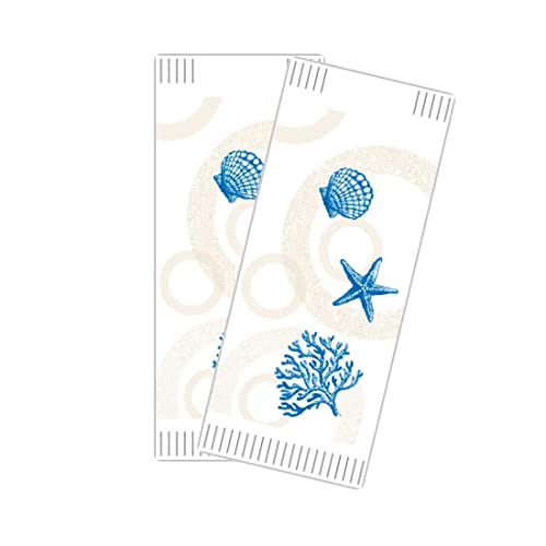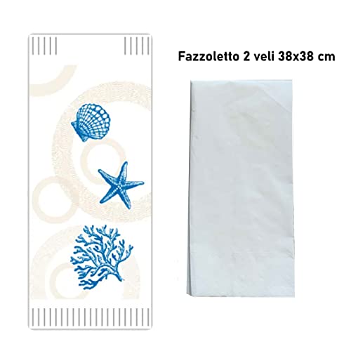 MAQA 100 pz Tovaglioli portaposate in carta fantasia mare, sacchetti in carta per posate con tovagliolo 38x38 cm, busta portaposate