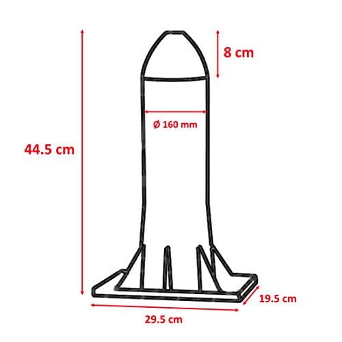 DIMENSIONI: Il tubo per arrosti è disponibile in vari diametri: 86-96-125 mm con base 25x16.5 cm e altezza 52 cm, 140 mm con base 25.5x17.5 cm altezza 44.5 cm, e 160 mm con base 29.5x19.5 cm altezza 44.5 cm. Completo di ogiva, con altezza 8 cm, per facilitare il caricamento della rete.