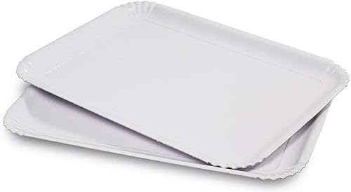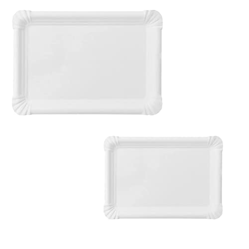 MAQA Vassoi di carta bianco 26x35 e 31x42 cm, vassoi usa e getta per feste, vassoio rettangolare per dolci, pasticcini, pizzette 26x35 cm