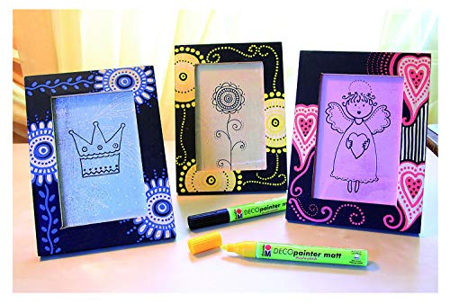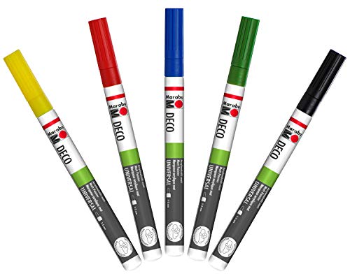 Marabu 0122080 Deco Painter, matite acriliche opache a Base d'Acqua, ad Asciugatura Rapida, Punta Universale con Spessore del Tratto 1-2 mm, 5 Penne in Giallo, Rosso, Blu, Verde e Nero