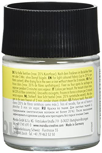 Marabu 17160005070 - Colore per Tessuti, Base d'Acqua, per Tessuti Chiari, Lavabile Fino a 60°C, Impugnatura Morbida, Facile da Fissare con Ferro da Stiro o Forno, 50 ml, Bianco