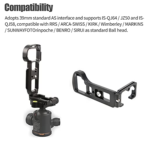 ♢ 「Compatibilità」 Adotta un'interfaccia AS standard da 39 mm, supporta IS-QJ64 / JZ50 e IS-QJ58, compatibile per RRS / ARCA-SWISS / KIRK / Wimberley / MARKINS / SUNWAYFOT Orinpoche / BENRO / SIRUI COME ballhead standard.