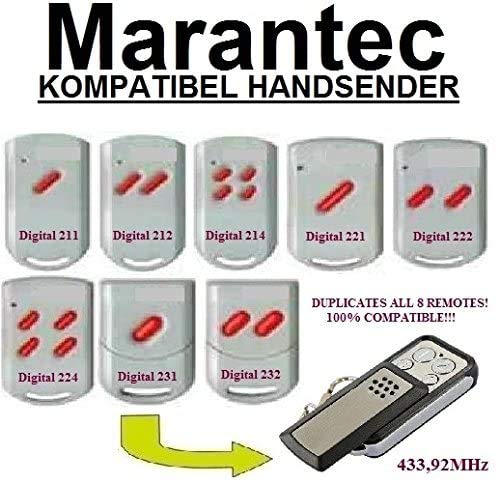 Marantec Digital 211/212/214/221/222/224/231/232 compatibile Clone telecomando trasmettitore di ricambio, 433,92 MHz Fixed code Clone.