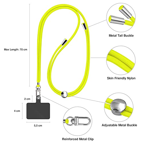 MARARDI Cordino da Collo per Telefono Cellulare [Fluoro Giallo] + 2 Toppe Extra [Nero] Catenella Laccio Strap Porta Cover - Tracolla Catenina con Cordini da Phone Cellulari - Laceetti Universale