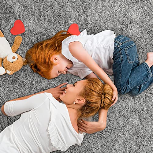 MARATIP Tappeto rotondo Peloso Soggiorno Tappeti per Grandi Dimensioni Salotto Moderno cameretta Bimba tappeti,Tappeto morbido e soffice per la camera da letto(Grigio,Ø 100 cm Rotondo)