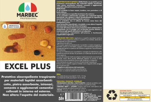 EXCEL PLUS è un prodotto per la protezione oleorepellente dei materiali lapidei assorbenti: cotto, pietra assorbente, intonaci, cemento e agglomerati cementizi collocati in interno ed esterno. Prodotto in base acqua, inodore, non pericoloso e di facile ut