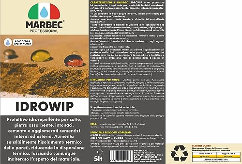 MARBEC IDROWIP 5LT Protettivo idrorepellente per materiali lapidei assorbenti: cotto, pietra, intonaci e agglomerati cementizi