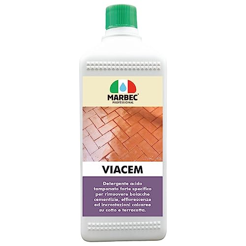 MARBEC VIACEM 1LT Detergente acido tamponato forte specifico per rimuovere boiacche cementizie, efflorescenze ed incrostazioni calcaree su cotto e terracotta.