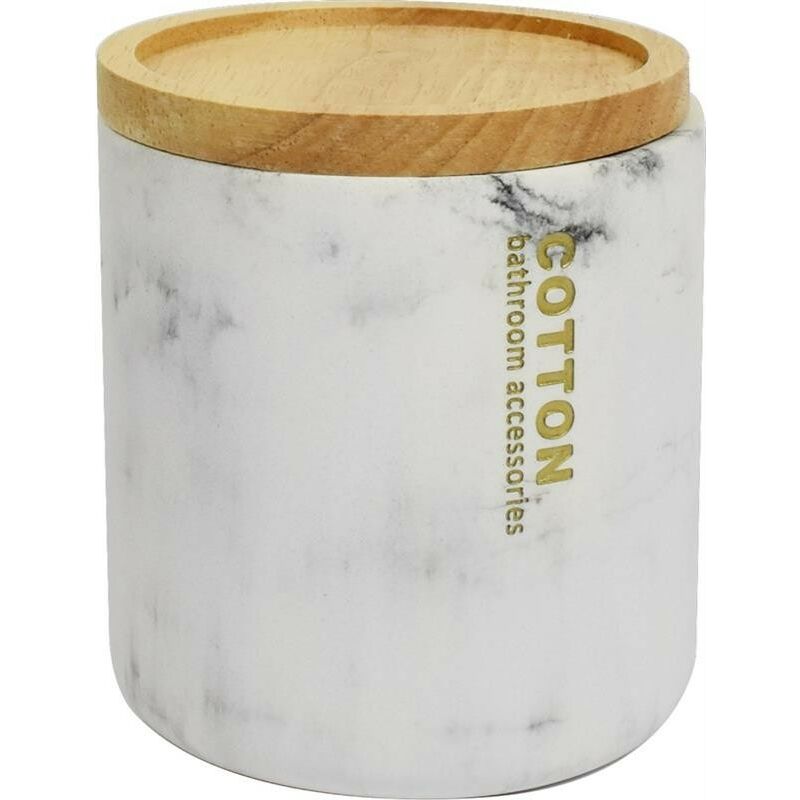 Porta oggetti linea Marble marchio Maury's. Con coperchio in legno. Colorazione marmorea. Design moderno. adatto a diversi tipi di arredamento. Decorato con una scritta.