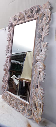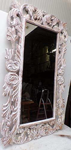 Marblechic - Specchio barocco in legno intarsiato cm 150x90 bianco decapato mod. Victoria