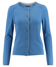 Il cardigan ha uno scollo rotondo e una abbottonatura in colore a contrasto.