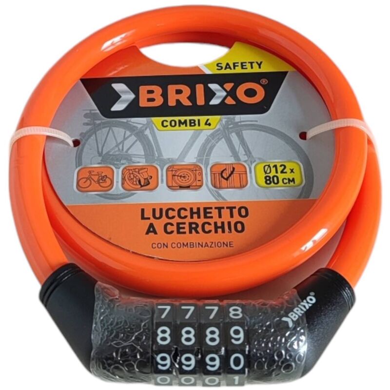 Lucchetto a cerchio Per biciclette - cicli Combi 4 Modello a combinazione 4 cifre Cavo in acciaio rivestito in PVC Dimensioni: 12 x 80 cm