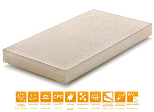 Marcapiuma - Materasso bambino 60x120 alto 10 cm - BAMBY - Materassino Baby in Waterfoam Schiuma Espansa - TRASPIRANTE - Rivestimento sfoderabile Antiacaro lettino Offerta neonato 100% Made in Italy