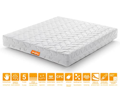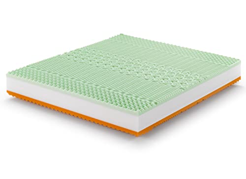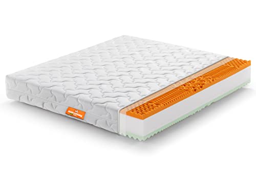 COMPOSIZIONE: Il primo strato alto 4 cm è composto da BIO Memory Soia, schiuma arricchita con essenze vegetali alla soia con alveoli massaggianti, per un riposo sano e naturale. Il secondo strato alto 11 cm è composto da Waterfoam, schiuma espansa ad acqua, struttura portante del materasso a celle aperte, ideale per chi cerca un materasso rigido ma allo stesso tempo confortevole. Il terzo strato alto 4 cm è composto da Waterfoam a 5 zone per una sensazione di piacevole freschezza ed ergonomia.