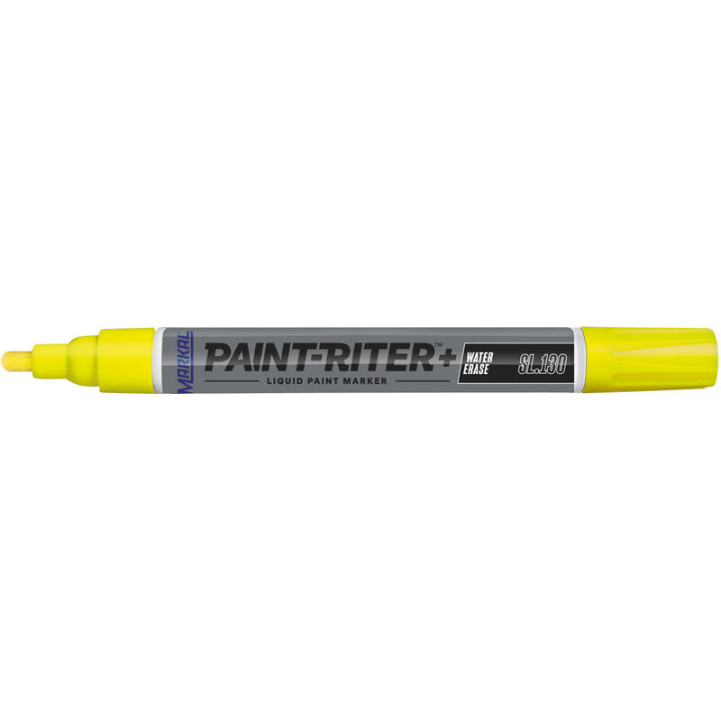 China a base di gesso e acqua. Punta rotonda per evidenziazioni di 2 − 4 mm di larghezza. Resistente ai raggi UV. Pigmenti fluorescenti, di colore particolarmente intenso e con una luminosità molto elevata. Uso: Le evidenziazioni sono facilmente cancellabili con acqua, senza lasciare tracce né residui. Dati tecnici Tipo di prodotto Marcatori a vernice Larghezza tratto massima, mm 4 Larghezza tratto minima, mm 2 Colore inchiostro giallo Resistente ai raggi UV sì Denominazione originale prodotto SL130 Impermeabili all'acqua no