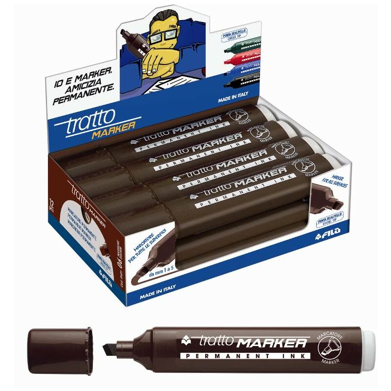 MARCATORE TRATTO MARKER Punta a Scalpello MARRONE - Espositore da 12 pezzi ATTENZIONE: SE IN FOTO O NEL TITOLO VIENE VISUALIZZATO UN ASSORTIMENTO O ESPOSITORE, IL PREZZO FA RIFERIMENTO AL SINGOLO PEZZO E NON ALLA CONFEZIONE. NOTA SUI TEMPI DI EVASIONE E SPEDIZIONE: ACQUISTANDO QUESTO PRODOTTO I TEMPI DI GESTIONE POSSONO ARRIVARE FINO A 10 GIORNI LAVORATIVI.