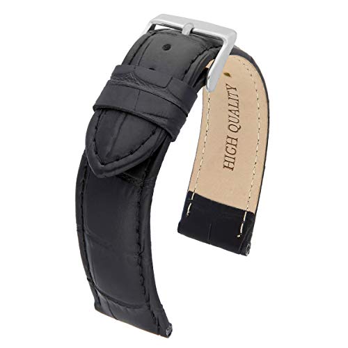MARCHEL Croco LM Cinturino in pelle nera marrone bianco rosso blu verde goffratura coccodrillo cinturino cinturino per orologio pelle bovina, Nero, 18 mm, cinghie