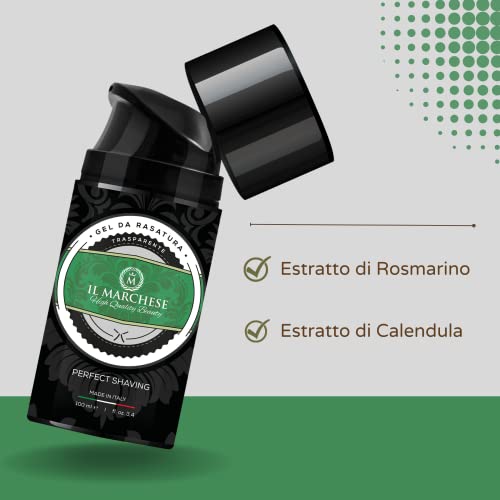 Il Marchese - Gel da Barba Trasparente - Gel Barba Professionale per Rasatura Uomo - Made in Italy - Anti Arrossamento Idratante - Per Dettagli e Rifinitura Barba - 100 ml