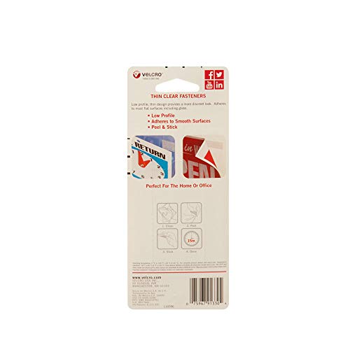 Marchio VELCRO - Chiusura sottile trasparente | Perfetto per la casa o l'ufficio | 2/8 pollici quadrati | Confezione da 12