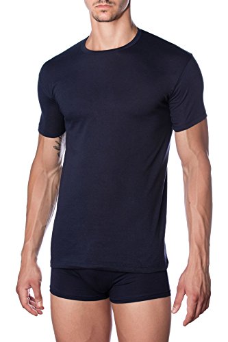 MarcLuis - Mezza Manica Girocollo in 100% Puro Cotone Jersey Pettinato per Una Morbidissima e freschissima Sensazione sulla Pelle, Confezione da 3 Pezzi, Colore: Blu, Taglia M
